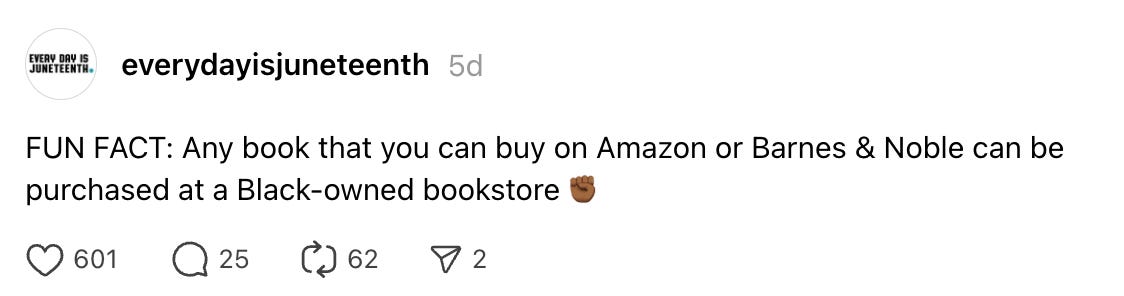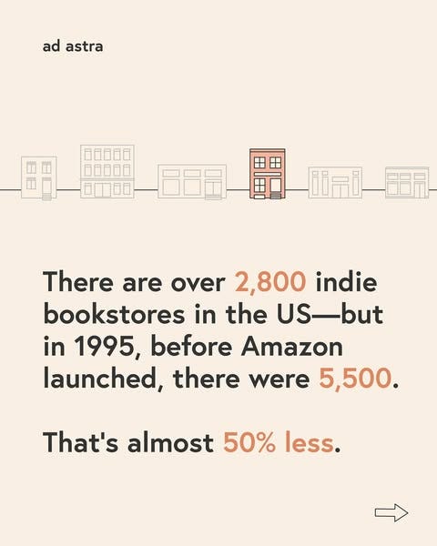 We also can’t forget that indies are often thoroughly invested in the authors that these big retailers and publishers are completely okay with overlooking/intentionally excluding. There are indies that focus on Black authors, indies focused on disabled authors, indies focused on books in translation, and plenty more. Libro.fm’s bookstore map is a great resource—you can filter by location, how the owner identifies, etc.